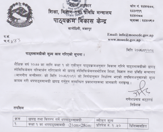 Read MoreInformation of the Curriculum Development Center regarding the price of textbooks for school level classes 1 to 10 for the