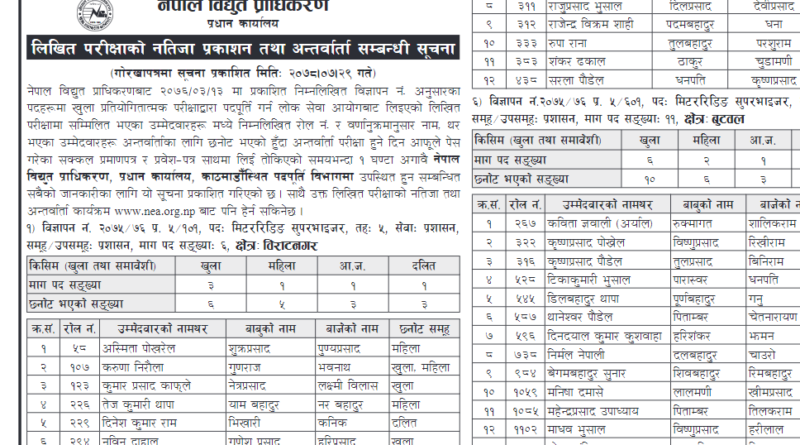 Read MoreThe Nepal Electricity Authority (NEA) has published the written examination results of Level 5 and information related to the interview.
