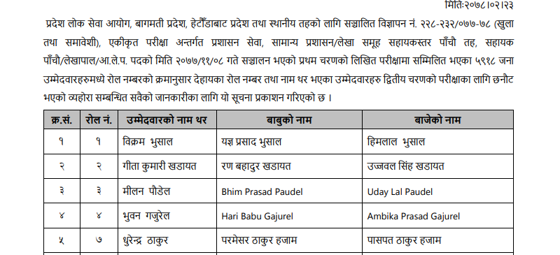 Read MoreBagmati Pradesh Loksewa aayog has published Fourth level written examination results of the Technical Post. Check Here Result :- PDF