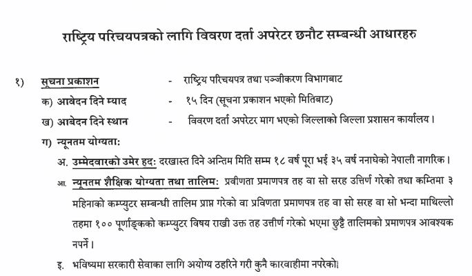 Read MoreDetails for National Identity Card Registration Operator (Rastriya Parichayapatra and Panjikaran Bibhag) Selection Basis & Syllabus Rastriya Parichayapatra and Panjikaran