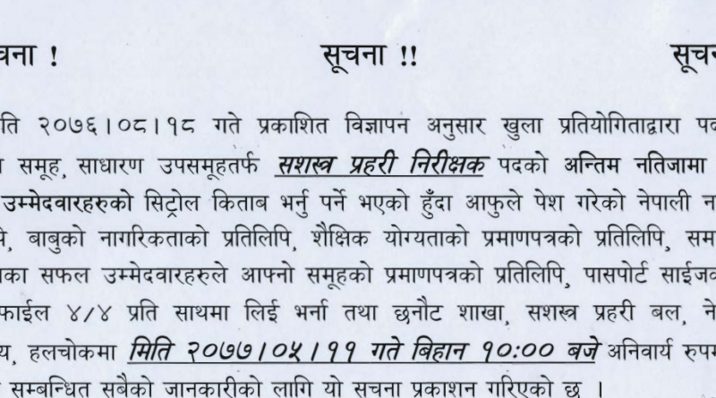 Read MoreArmed Police Force, Nepal Published the Final result publication for the post of Assistant Inspector of Armed Police
