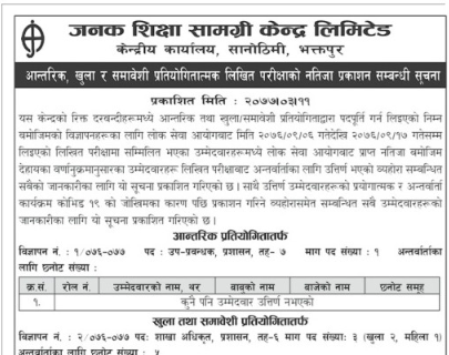 Read MoreJanak Shiksha Samagri Kendra ( Janak Educational Material Center) Open & internal Competition vacancy of various post written exam result