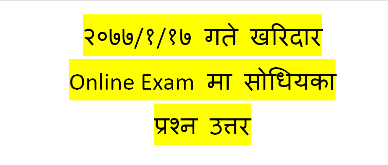 Read MoreKharidar Online exam Question & Answer Other Question Check Here PDF Next TSC Exam- 2077/1/18 Next Prasa Online Exam- 2077/1/19