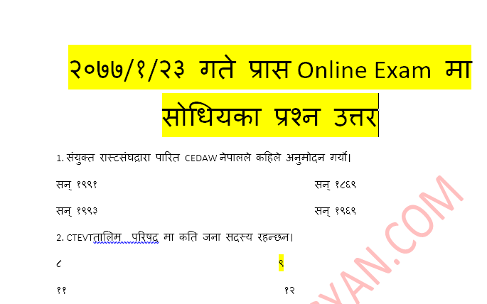 Read MorePrasa Online Exam question & Answer Set-III Other Question PDF Check Here Next prasa online Exam :- 2077/1/9 ( Tuesday