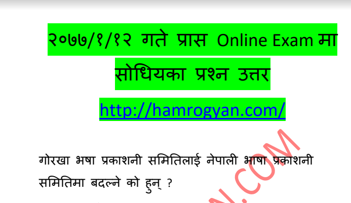 Read MoreOther Question PDF Check Here PDF Next prasa online Exam :- 2077/1/12 (Friday ) Next Kharidar Online Exam :- 2077/1/13