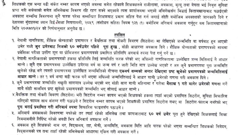 Read Morecompulsory Retrire Teacher List from 207 Shrawan 1 to 2077 Last Poush 01 Taplejung 01-Taplejung.xls 02 Panchthar02-panchthar.xls 03 Illam03-Ilam.xlsDownloadDetails 04